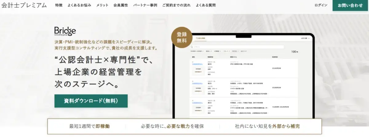 ブリッジコンサルティンググループ、会計士特化型マッチング「会計士プレミアム」提供開始1周年